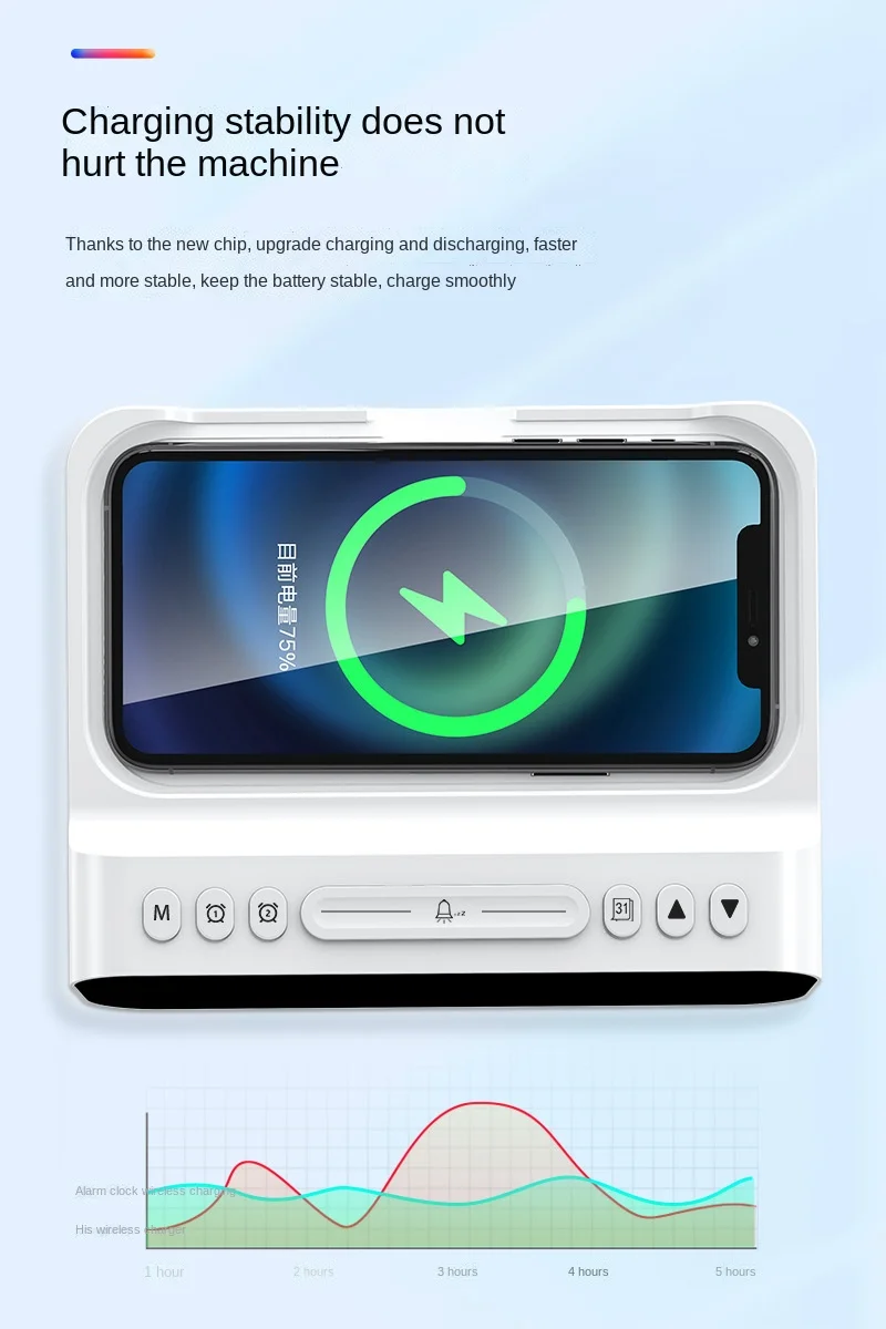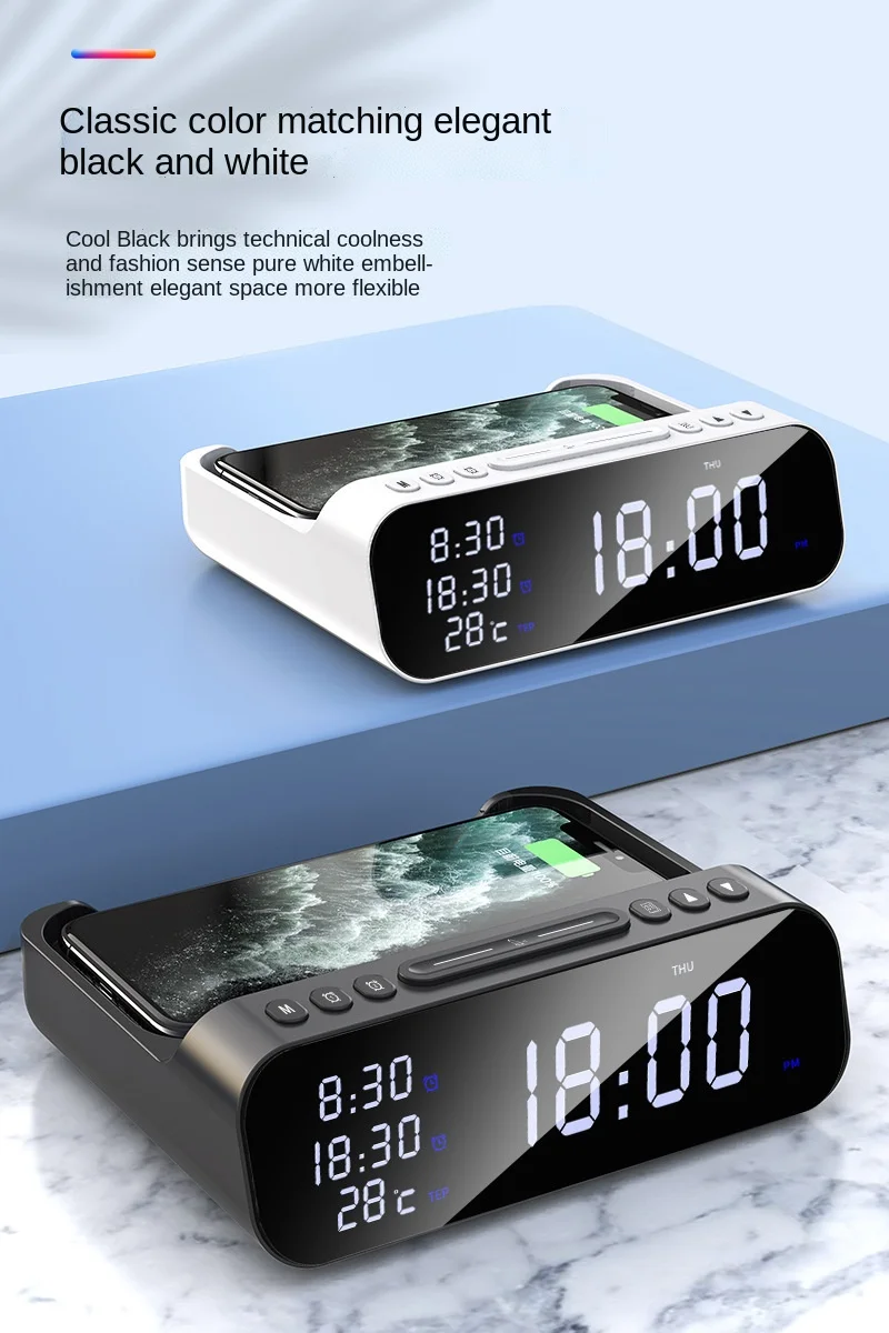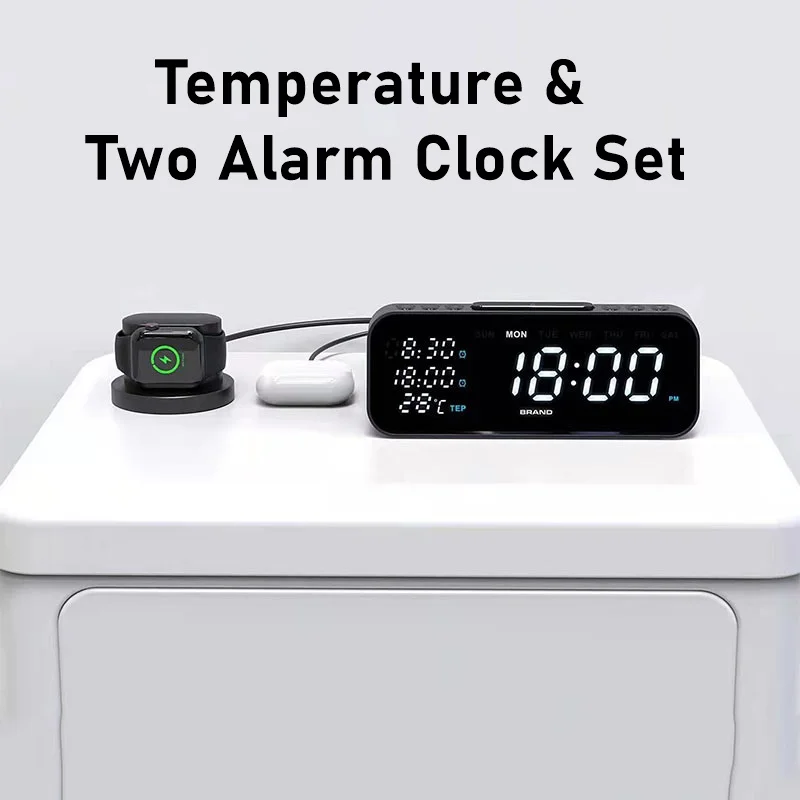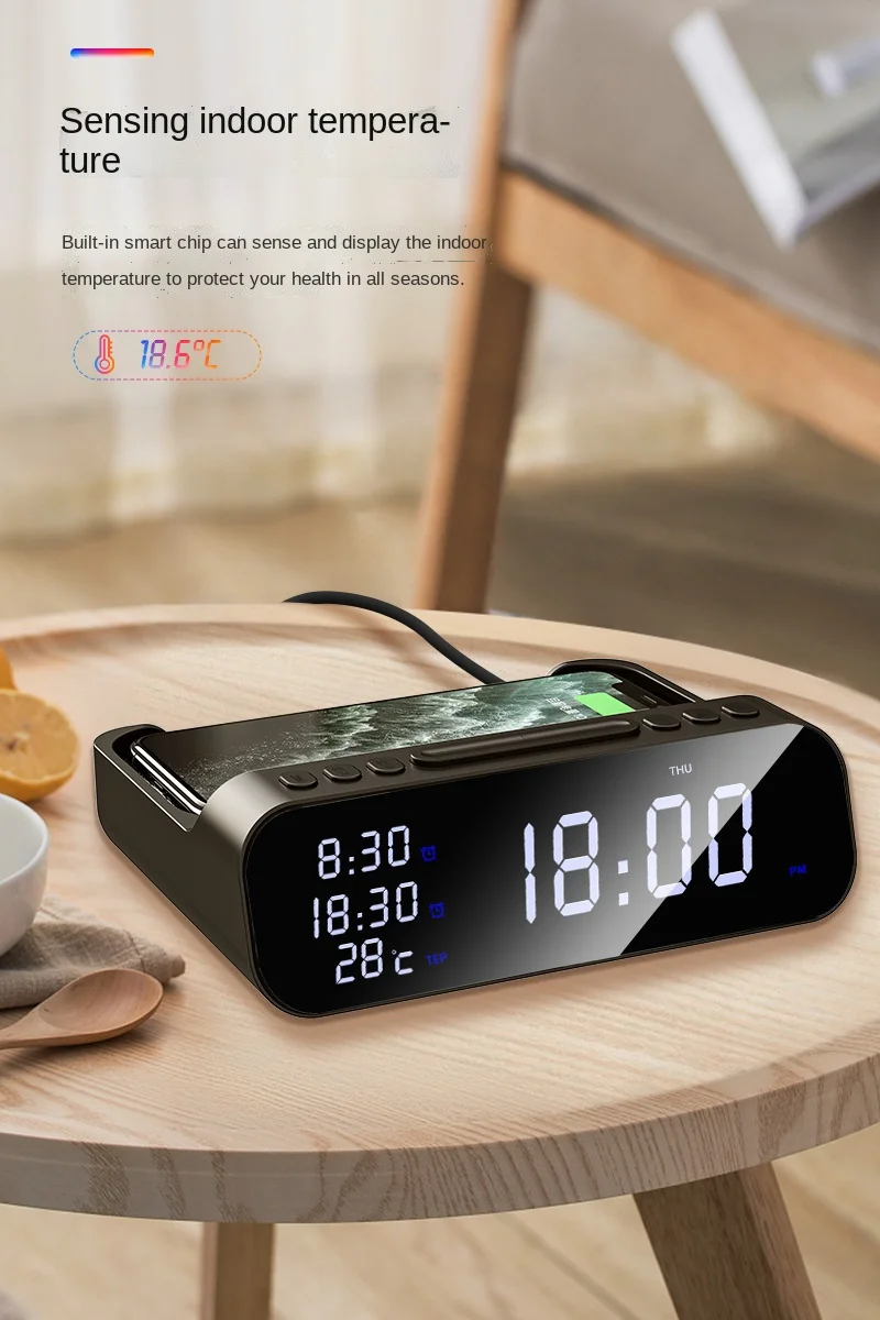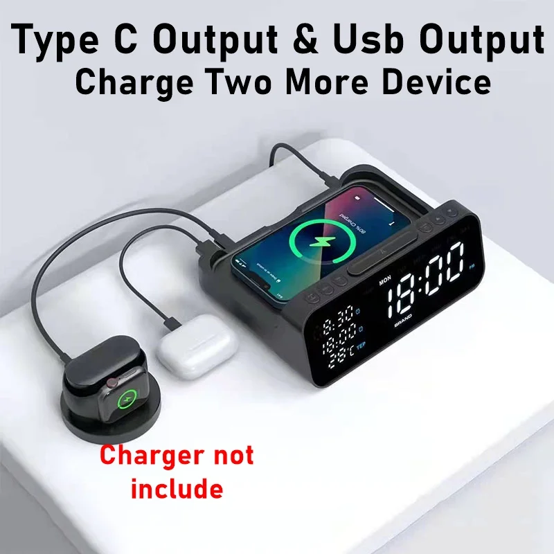Digital Alarm Clock Wireless Charger Station 30W Temperature Tester Usb C Charger Station For Iphone Samsung Xiaomi
